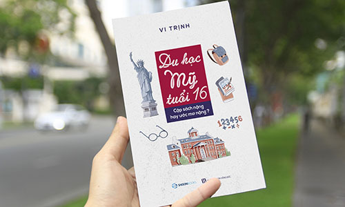 Bìa cuốn sách “16 tuổi du học”. -Vũ Trinh cũng mang đến cái nhìn về nền giáo dục của Mỹ. Người Mỹ không dạy thế hệ trẻ theo kiểu dạy chữ, dù nặng về lý thuyết nhưng họ vẫn coi trọng kiến thức thực tế. Mỗi lớp là một cuộc họp thảo luận. Giáo viên sẽ đề xuất một chủ đề để học sinh thảo luận và tóm tắt. Thông qua lớp học, học sinh dễ dàng tiếp thu kiến thức và tự tin hơn.