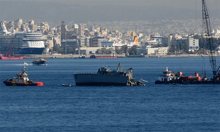 Hải quân và cảnh sát Hy Lạp đã triển khai thiết bị đặc biệt để đưa Calisto đến cảng Salamis. Một đoạn video dài 40 giây được phát trên Youtube cho thấy một chiếc tàu kéo ở phía trước và một giàn cẩu ở phía sau để ngăn chiến hạm Kallisto bị chìm.