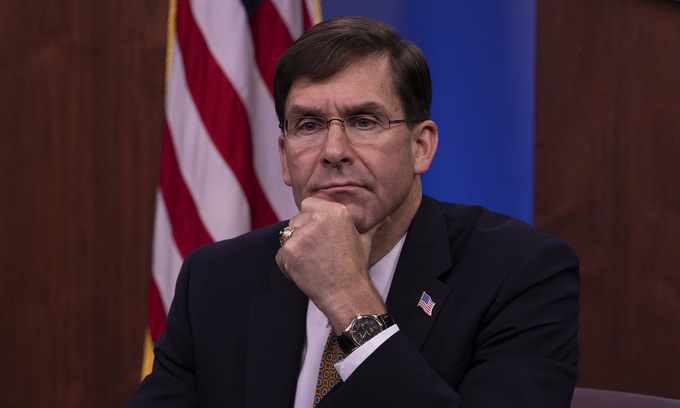 “Mark Esper đã bị loại bỏ. Tôi cảm ơn anh ấy vì sự phục vụ của anh ấy. Giám đốc Cơ quan chống khủng bố quốc gia, Christopher Miller, sẽ giữ vai trò quyền Bộ trưởng Quốc phòng ngay lập tức, có hiệu lực ngay lập tức”, Tổng thống Mỹ Donald Trump tweet hôm 11/9. Thư ký Esper đã viết trong hội thảo trên web của Lầu Năm Góc vào ngày 21 tháng 10. Ảnh: Bộ Quốc phòng Hoa Kỳ.