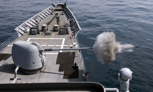 Trong một cuộc tập trận, súng Mk-45 của Mỹ đã khai hỏa. Ảnh: Hải quân Hoa Kỳ.