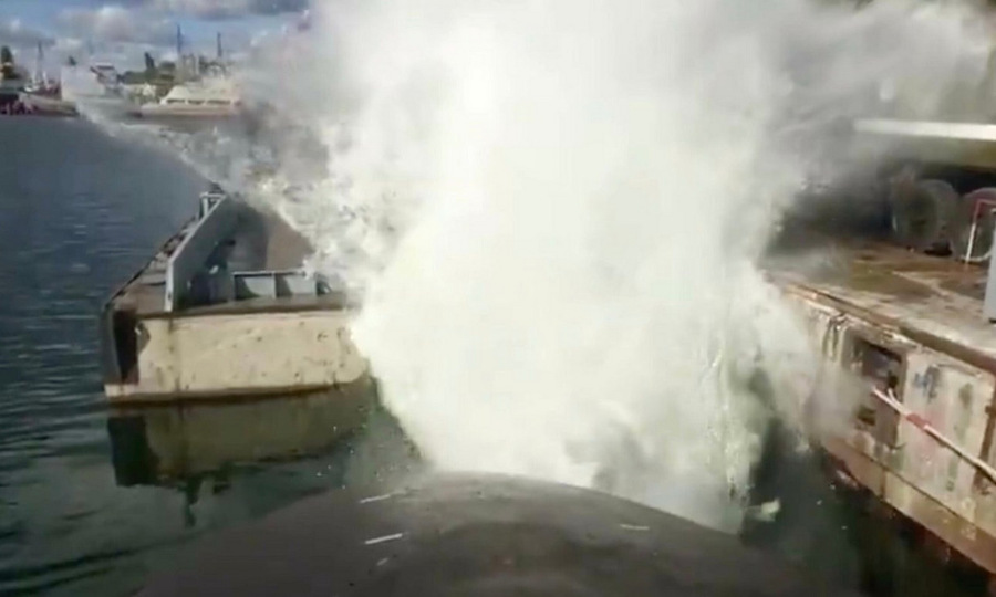 Ngày 16/12, một đoạn video được chia sẻ trên mạng xã hội Nga cho thấy tàu ngầm Nga thử nghiệm ống phóng ngư lôi tại một cảng. Số lượng và tên của chiếc tàu ngầm không được tiết lộ, nhưng nó có vẻ là tàu ngầm diesel-điện Kiểu 636, thuộc hạm đội Hải quân Baltic của Nga. — Một nhóm người ăn mặc kỳ lạ đứng trên sà lan neo đậu trước mũi tàu ngầm, dùng điện thoại di động quay lại ống phóng ngư lôi để thử nghiệm. Sau một tiếng động lớn, máy phóng ở mũi phải của tàu ngầm đã được kích hoạt, tạo ra rất nhiều áp lực và đẩy rất nhiều nước về phía chúng.