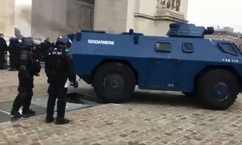 Khi chiếc xe bọc thép VBRG của hiến binh quốc gia Pháp (Berliet VXB-170) tiến vào Paris, chiếc kính trang trí đã vô tình bị vỡ dưới chân Khải Hoàn Môn ở Paris. RT đã báo cáo vào ngày 14 tháng 1 rằng màu vàng đã được nhấn vào cuối tuần trước. Tầng trên của tòa nhà nổi tiếng này. Áo giáp VBRG đã được sử dụng bởi hiến binh quốc gia Pháp từ năm 1975 và thường được sử dụng để đàn áp và chiến đấu chống khủng bố để bảo vệ lãnh thổ. Xe VBRG dài khoảng 6 m và rộng 2,5 m, và có thể chở 7 đến 9 binh sĩ. Được trang bị động cơ V800 có công suất 170 mã lực, VBRG có thể đạt tốc độ tối đa 85 km / h và có thể dễ dàng vượt qua độ dốc 30 độ.
