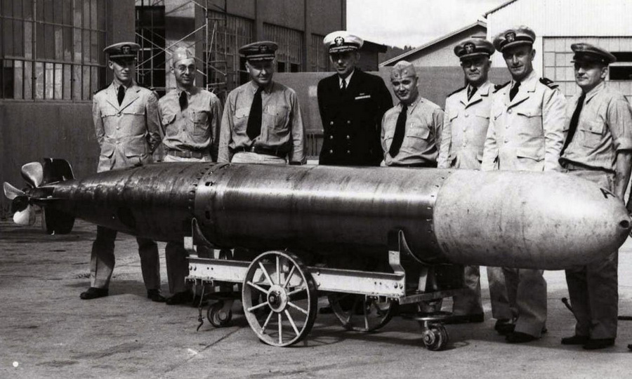Một sĩ quan Hải quân Hoa Kỳ nằm cạnh ngư lôi Mark 14. Ảnh: Hải quân Hoa Kỳ.