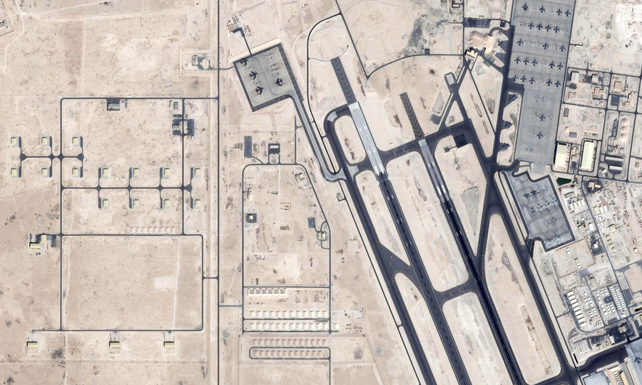 Một góc của căn cứ Al-Udeid nhìn từ vệ tinh Iran. Ảnh: IFP News .