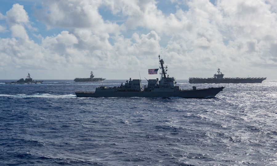 “Các binh sĩ đã được lệnh không nổ súng trước. Các phi công và sĩ quan hải quân phải kiềm chế tối đa khi chạm trán với tàu chiến và máy bay Mỹ ngày càng nhiều”, một nguồn thạo tin cho biết. Một nguồn tin thân cận với Bộ Quốc phòng cho biết, Bắc Kinh đã đưa ra thông báo cho Washington rằng “quân đội Trung Quốc được lệnh không nổ súng trước”, một bức ảnh của quân đội Trung Quốc nói với South China Morning Post ngày 11/8, “để thể hiện sự thành thật.” Nhưng cả Trung Quốc và Hoa Kỳ đều không thể kiểm soát được hậu quả. Ông nói thêm: “Tình hình hiện nay rất căng thẳng và nguy hiểm.” Hai tàu sân bay Mỹ diễn tập ở Biển Đông vào tháng 7. Ảnh: Hải quân Mỹ. Căng thẳng gần đây giữa hai bên ở khu vực Biển Đông và Washington. Hai bên gần đây đã tăng cường các hoạt động quân sự trong khu vực, làm tăng nguy cơ xung đột do tai nạn. Bộ trưởng Quốc phòng Mỹ Mark Esper đã gọi điện cho Ngoại trưởng Trung Quốc Wei Fenghe vào tuần trước để bày tỏ lo ngại về các hoạt động gây bất ổn của Trung Quốc ở Biển Đông và các khu vực gần Đài Loan. Lầu Năm Góc tuyên bố rằng hai bên đồng ý “phát triển các hệ thống liên lạc cần thiết.” Trong thời gian khủng hoảng, hãy giảm bớt “.