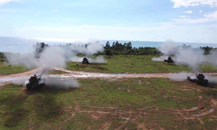Một đoạn video do Đài Truyền hình Trung ương Trung Quốc (CCTV) công bố ngày 10/8 cho thấy tổ hợp pháo phòng không tự hành tập trận bắn hạ các mục tiêu máy bay chiến đấu mô phỏng tại các địa điểm không xác định ở tỉnh Quảng Đông. Ở phía đông nam của đất nước, gần eo biển Đài Loan. Binh đoàn 75 của Bộ Tư lệnh Sân khấu miền Nam khi đơn vị ra đa vào khu vực phòng không sẽ phát hiện mục tiêu tưởng tượng, làm nhiệm vụ phòng không, thông báo tọa độ, hướng bay, tốc độ cao và mục tiêu. Theo báo “Thời báo Hoàn cầu”, tổ hợp pháo phòng không tự hành khai hỏa cùng lúc trong 2-3 giây, bao trùm lưới đạn rộng hàng chục mét vuông trên không. Cuộc tập trận là “đang hoạt động. Nó là cần thiết để bảo vệ chủ quyền.” Người phát ngôn của Bộ Tư lệnh Nhà hát phía Đông PLA, Đại tá Trang Xuanxiu, cho biết trong một tuyên bố thực tế tại Quảng Đông. Video: CCTV .