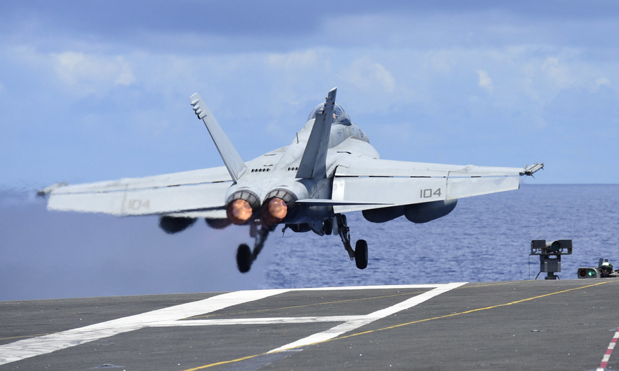 “Phối hợp với các đối tác là một yếu tố quan trọng trong việc đảm bảo khả năng đáp ứng và khả năng tác chiến phối hợp”, Trung tá Ronald Reagan, Sĩ quan Hoạt động Hàng không Joshua Fagan của Tàu sân bay Hải quân Hoa Kỳ cho biết. Tiêm kích F / A-18E cất cánh từ tàu sân bay USS Ronald Reagan ở Biển Đông ngày 14/8. Ảnh: Hải quân Hoa Kỳ Hai bên duy trì đà cao trong cuộc tập trận dưới tình hình căng thẳng giữa Trung Quốc và Hoa Kỳ, thời gian gần đây hai bên liên tục tăng cường các hoạt động quân sự trong khu vực gây nguy hiểm. Nguy cơ va chạm do tai nạn.