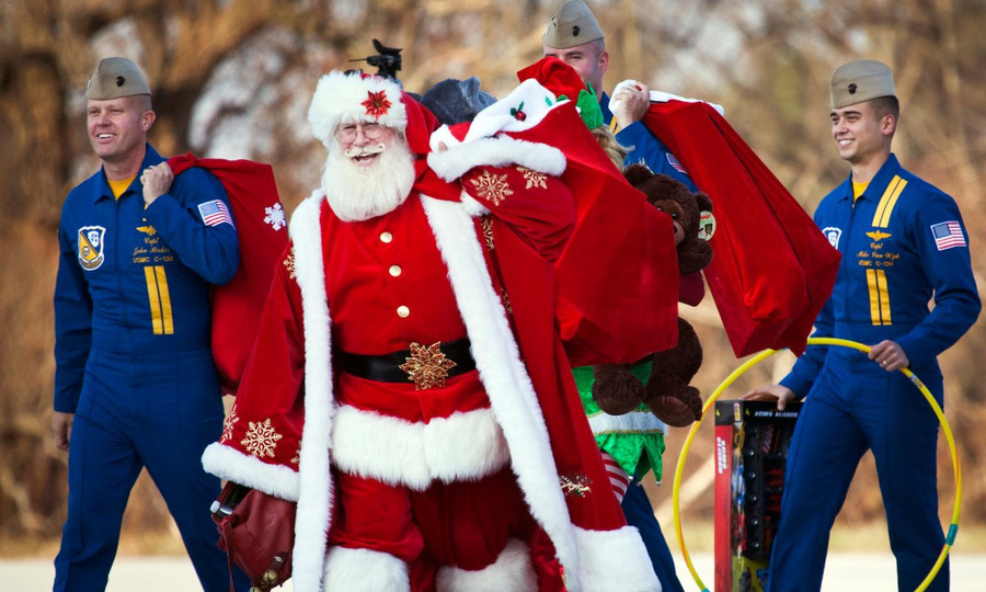 Những người lính đóng trên lãnh thổ Mỹ cũng đến nghĩa trang để thăm và chăm sóc phần mộ của những người lính thiệt mạng trong cuộc hành quân. — Sĩ quan đóng vai ông già Noel và mang quà cho các phi công trong chương trình thiên thần xanh của Hải quân Hoa Kỳ .